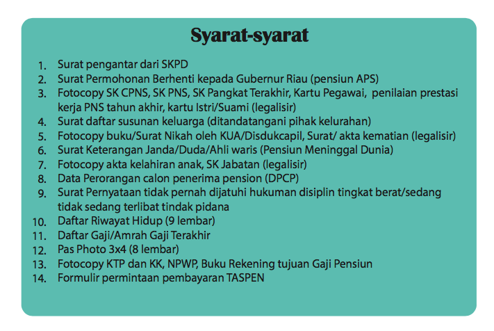 Infografis Layanan Pensiun Badan Kepegawaian Daerah Provinsi Riau Pengumuman On 10 Jul 2019 198 Bagikan Berikut adalah Infografis Layanan Pensiun yang dikelola oleh Badan Kepegawaian Daerah Provinsi Riau. 198 Bagikan